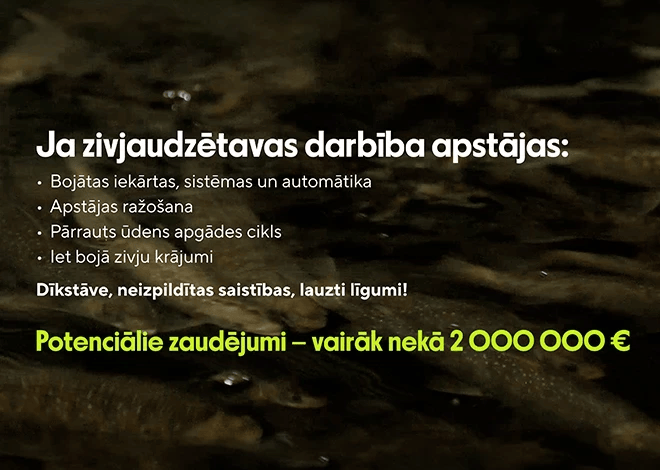 “Ugunsgrēks, ielaušanās, pēkšņi elektrības pārrāvumi, kas aptur sūkņa darbību un neļauj apskābekļot baseinus. Negaidīta zivju saslimšana vai pat vētra, kas var noraut jumtu. Vai vienkārši cilvēciskas kļūdas darba procesā, kas paralizē ražotni - tās ir situācijas, kuras mēs nevaram kontrolēt,” atzīst uzņēmējs. Lai naktīs var mierīgi gulēt, apdrošināšana vienmēr ir bijusi daļa no uzņēmuma biznesa plāna.